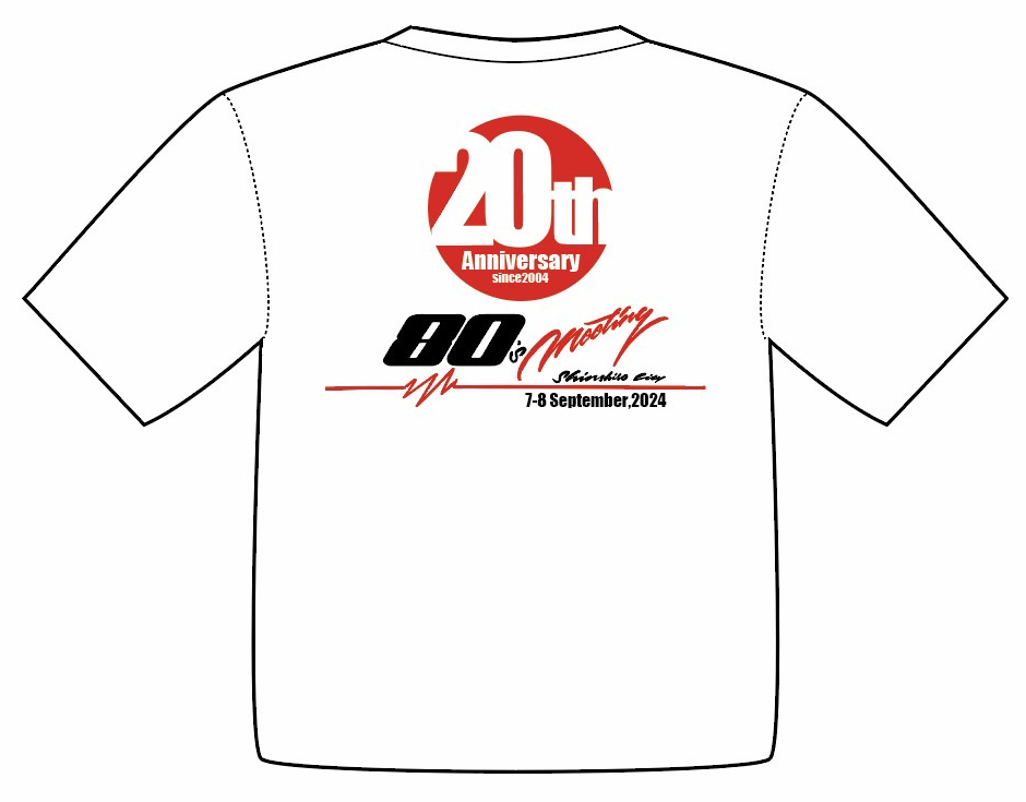~80's Meeting 2024 開催~ 今から22年程の約束 FZ400ROC全国ミーティングに参加したクラブメンバー 同じ時代を戦ってきた戦友たち 当時、F-3や峠を席巻したレーサーレプリカたち サーキットが一番熱かった時代 その時代が蘇った宴での約束によって実現した 80年代の車両を愛するものたちの全国ミーティング。 2004年、第一回80Sミーティング開催。。。 あれから20年・・・今年も暑い季節が訪れる!!もちろん、他の80'sや、80'sが好きな方であれば、現行車での参加も大歓迎です。 開催場所は、今までと変わり、いつも宴会、宿泊に使わせていただいている愛知県民の森で開催いたします。 宴会も行いますが、もちろん、土曜、日曜だけの日帰り参加も大歓迎です。 日程は、09/07(土)-08(日) 宿泊は、コテージを予約予定ですが、宿泊施設を使用されるか、自分たちで、テントを張りたいという方は、オートキャンプ場が使用できます。 詳細情報は、こちらで 80's Meeting 2024 詳細情報 ※宿泊、宴会参加希望の方は、8/09(金)までに、エントリーをお願いいたします!! 80's Meeting 2024 Entry List 参加表明は、こちらで! 今年は、20周年を記念してTシャツが復活します!! ・・・・・・・・・・・・・・・・・・・・・・・・・・・・・・・・・・ 80'sミーティング20周年記念企画「80'sTシャツ受注販売決定」 ▪️デザインは2種 A :白ベース/レッド&ブラック